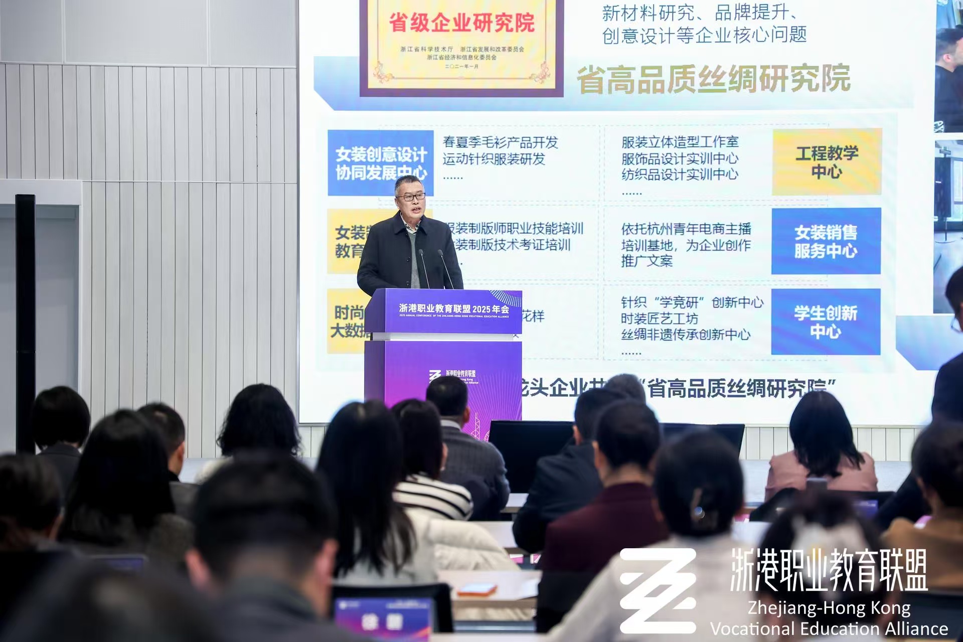 12月16日,“橙点·融创未来”浙港职业教育联盟2025年会在阿里巴巴集团举行。省教育厅党组成员、省教育考试院党委书记黄亮,省外办领事处处长、港澳处负责人阮洁,香港职业训练局香港专业教育学院助理院长吴美兰,阿里巴巴集团公益副总裁王威,浙江省香港商会会长唐龙添等出席年会。教育部港澳台事务办公室副主任舒刚波视频致辞。我校达利女装学院院长郑小飞、港澳台办公室副主任陆颖出席年会。
